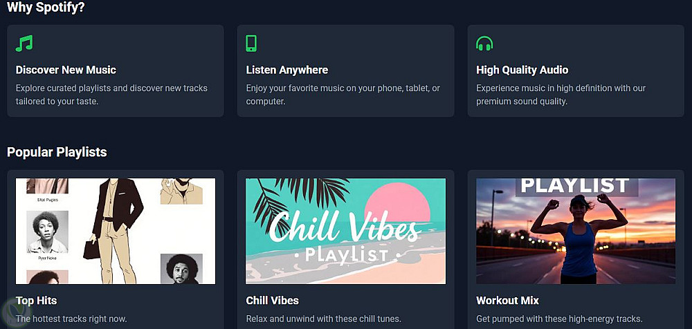 Spotify Website using HTML + Tailwin