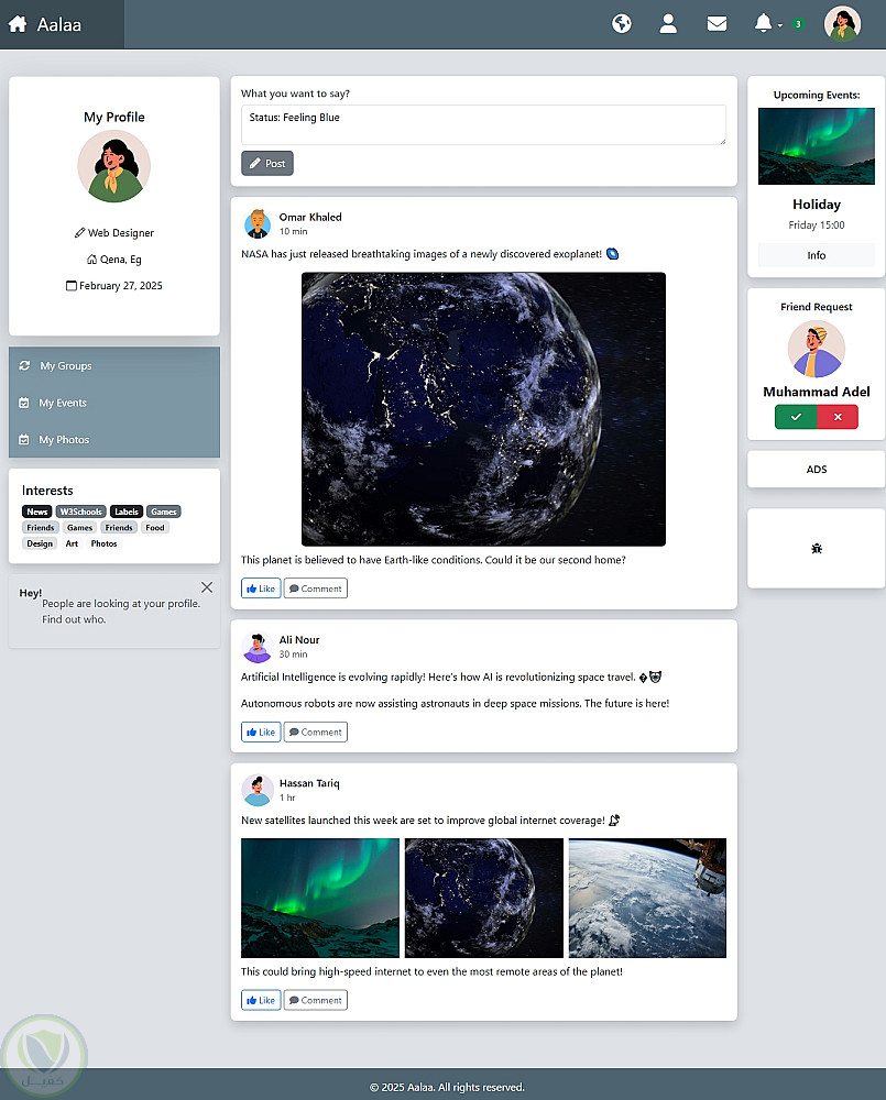 تصميم واجهة شبكة تواصل اجتماعي باستخدام HTML, CSS, Bootstrap
