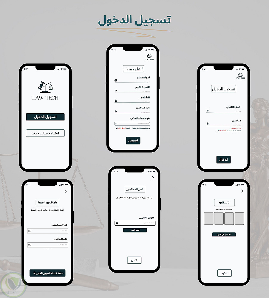 تصميم تطبيق محاماه_UI/UX )Law Tech)