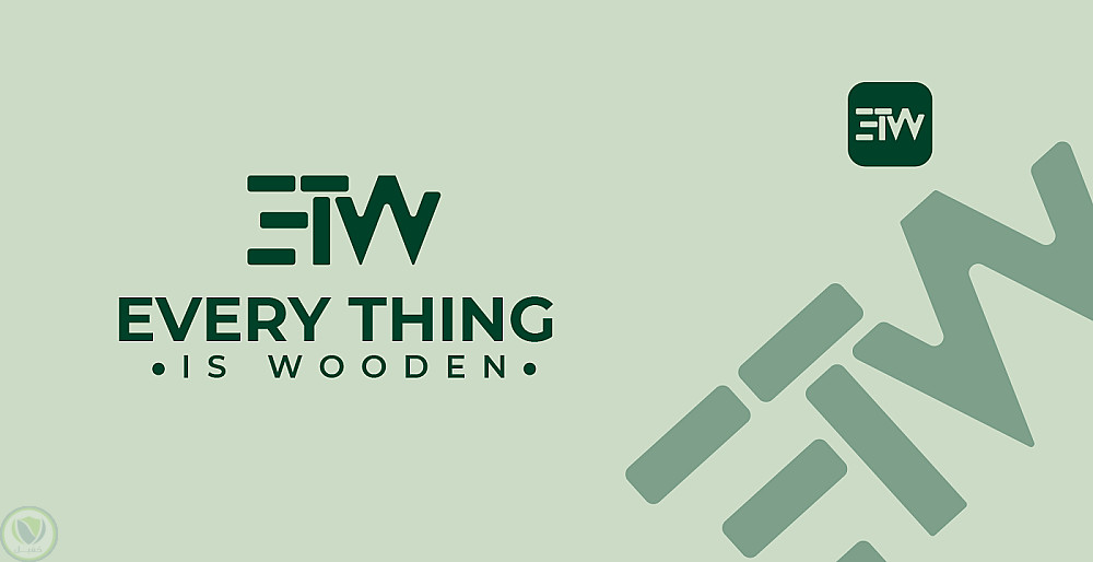شعار "ETW" (اختصار لـ "Everything Is Wooden") يتميز بتصميم عصري يعكس الاستدامة والصلابة. الأحرف واضحة ومتباعدة جيدًا، مما يضمن سهولة القراءة ويعزز الوضوح والثقة.
