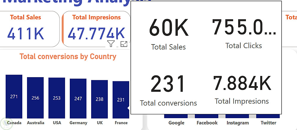 • تم إضافة نافذة منبثقة توضيحية (Tooltip) تسهل معرفة كل (KPI) خاصة بكل دولة علي حدي مع إمكانية تطبيقها بصور مختلفة علي جميع الشارتات (Charts)