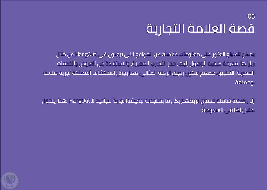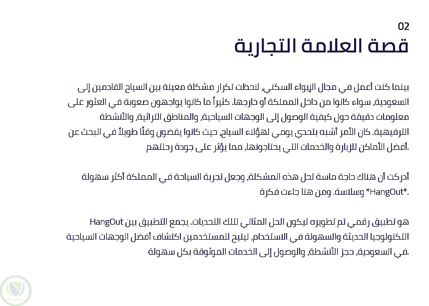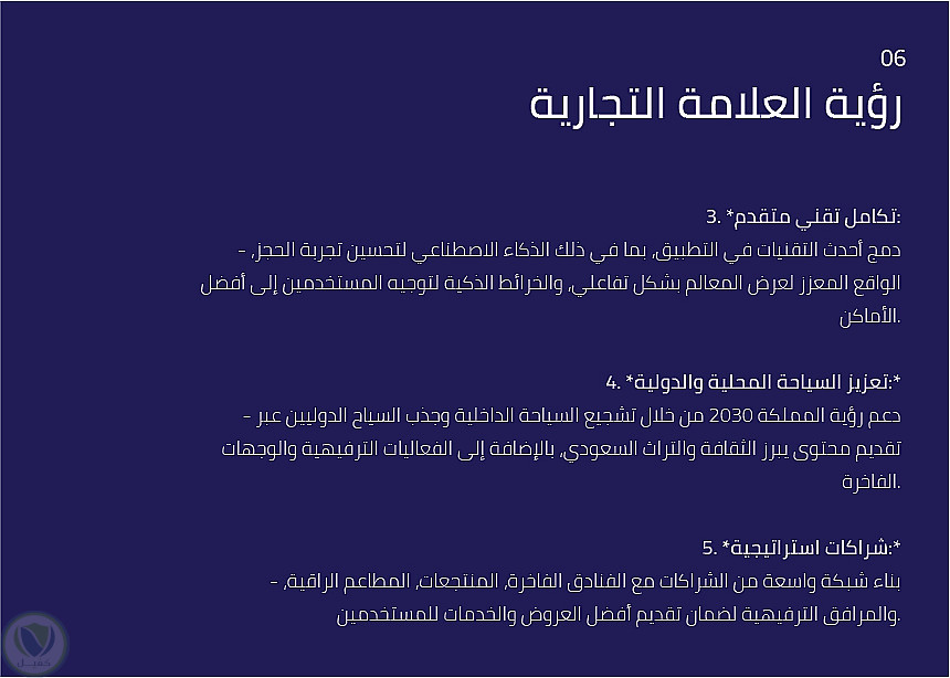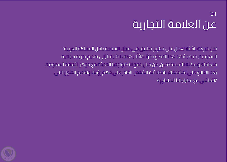 "شركتنا الناشئة تقود مستقبل السياحة في المملكة العربية السعودية من خلال تطبيق متطور مصمم لتوفير تجربة سلسة للمسافرين. مع النمو السريع لقطاع السياحة في المملكة، نهدف إلى أن نكون في الطليعة من خلال تقديم خدمات فريدة تجمع بين التكنولوجيا الحديثة والثقافة السعودية الأصيلة. بعد مراجعة تصاميمكم، يتضح أنكم..."