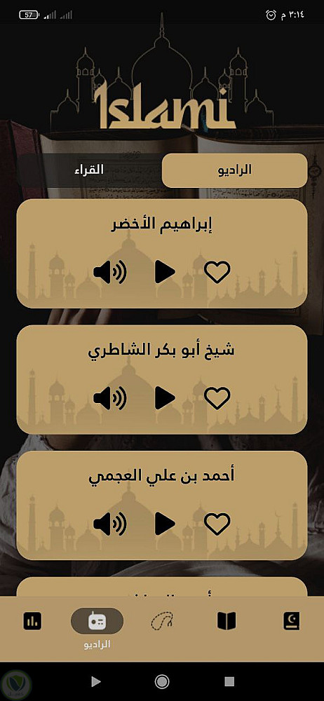 راديو مباشر يحتوي على تلاوات لمجموعة من كبار مشايخ العالم الإسلامي