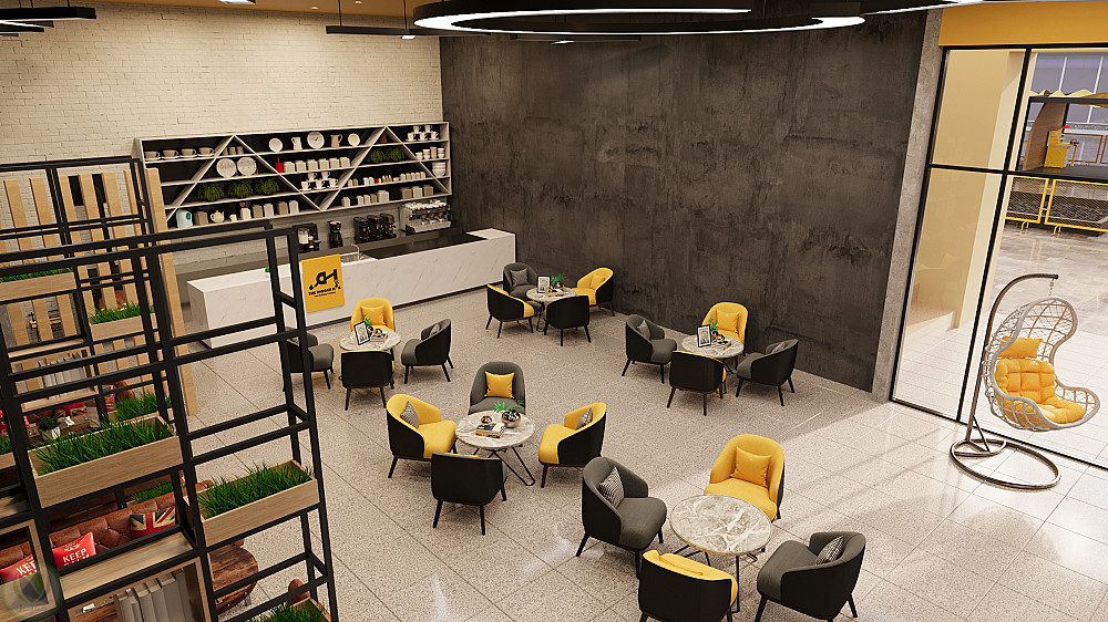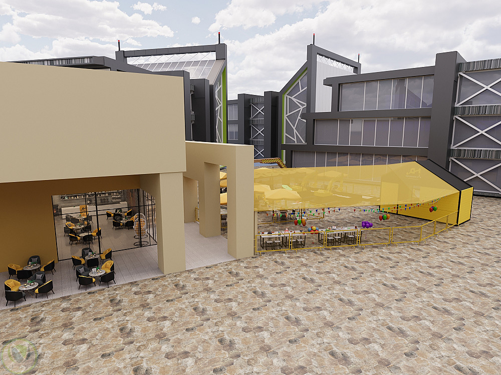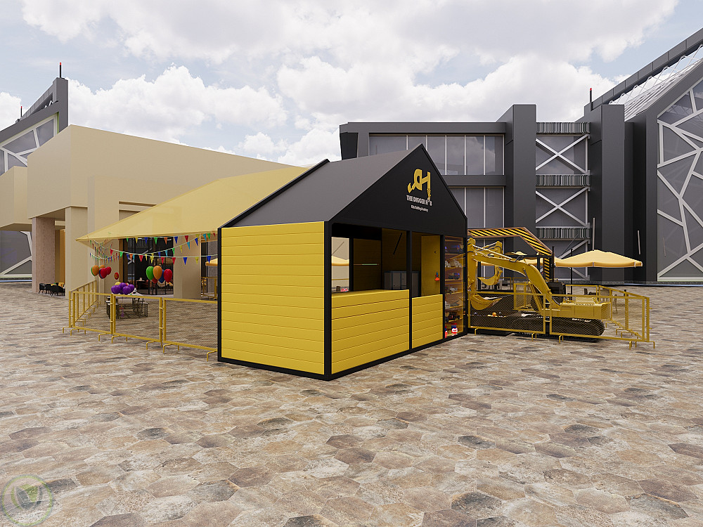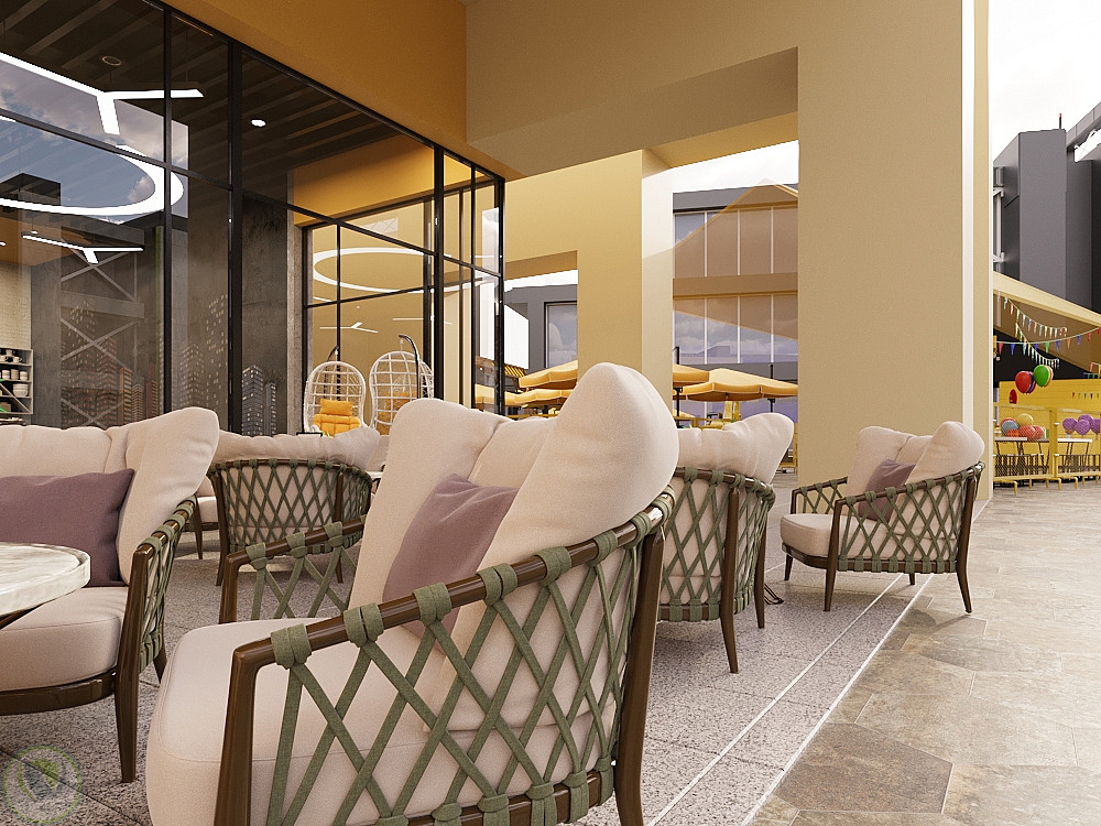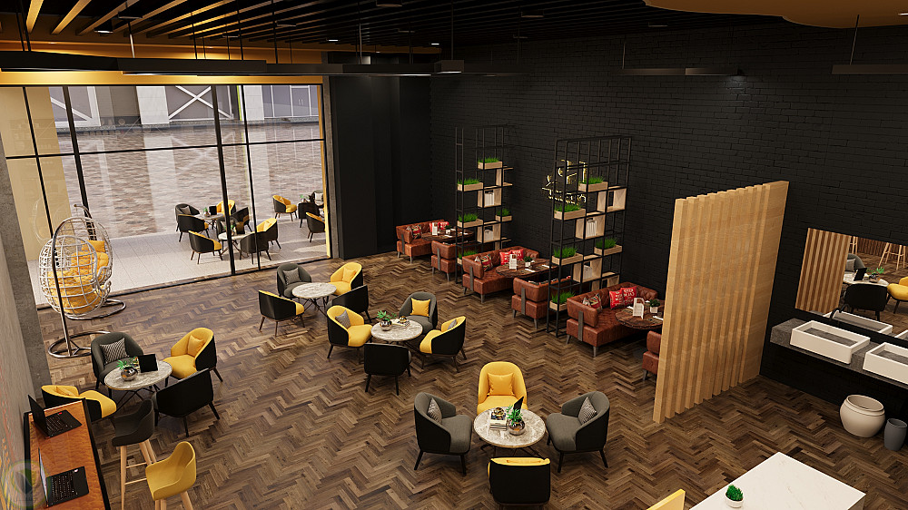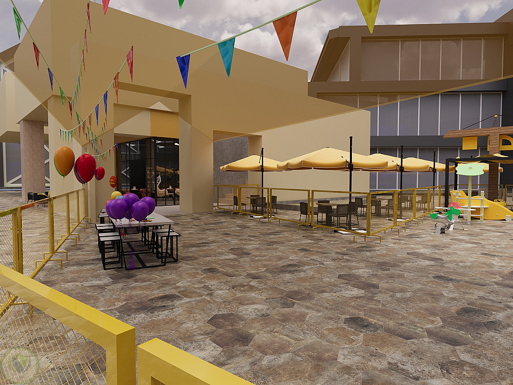 تصميم كافيه مع مكان لالعاب الاطفال و تنظيم اعياد الميلاد