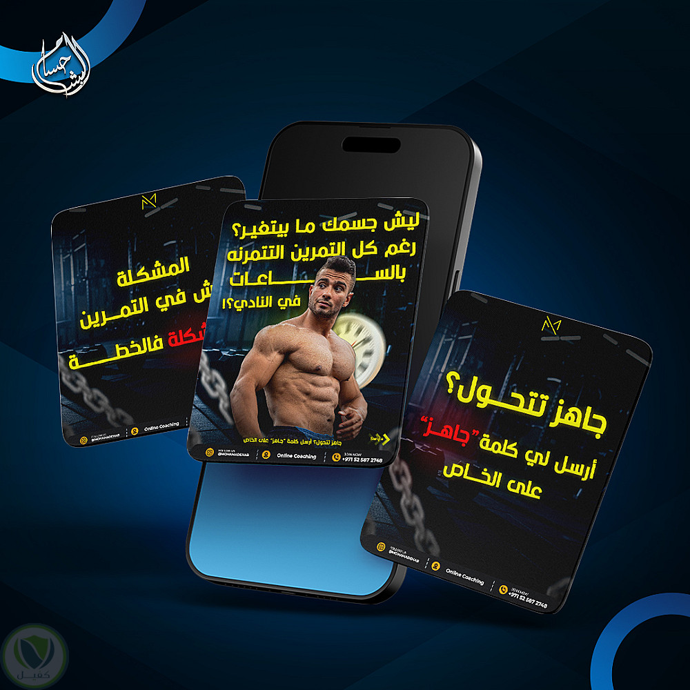 تم تنفيذ هذا التصميم كمنشور كيروسيل لصالح مدرب كمال أجسام بهدف تقديم محتوى تعليمي متعلق بالتمارين والتغذية. يتكون الكيروسيل من عدة شرائح مترابطة بصريًا ومضمونيًا، تم تنسيقها بشكل تسلسلي يوضح المعلومات بطريقة جذابة وواضحة.