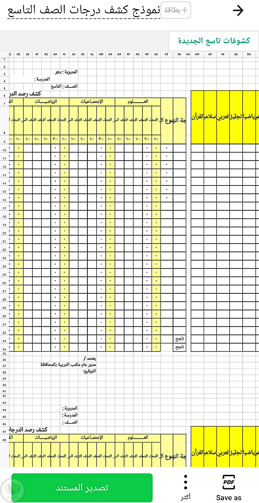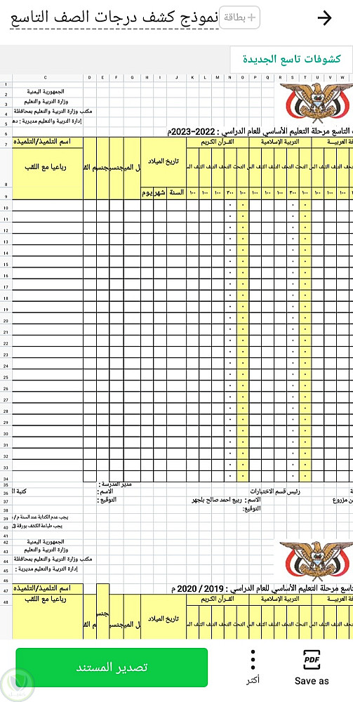 اعداد جداول وقوائم الملفات الاكسل لمستوى تحصيل الطلاب في المرافق التعليمية