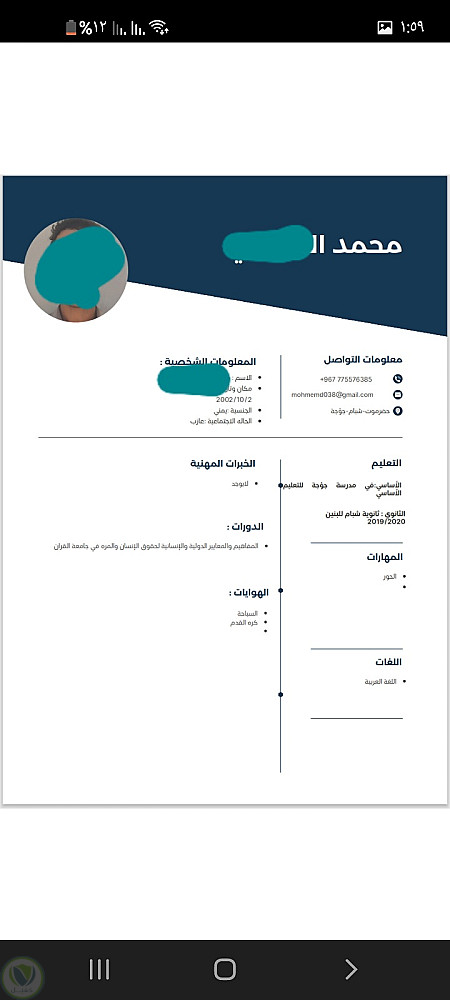 سيره ذاتيه لاحد طلاب جامعة القران الكريم