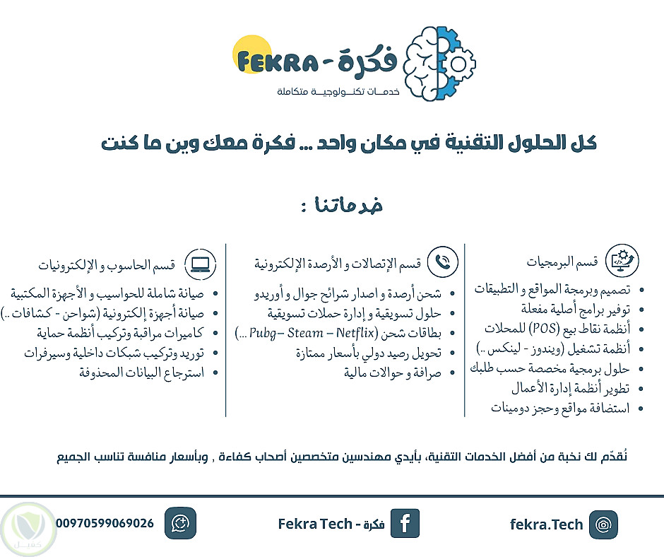 فكرة , هي شركة مبتكرة تقدم خدمات و حلول إبداعية في تكنولوجيا المعلومات و موجهة للسوق الغزي في ضل الظروف الحالية