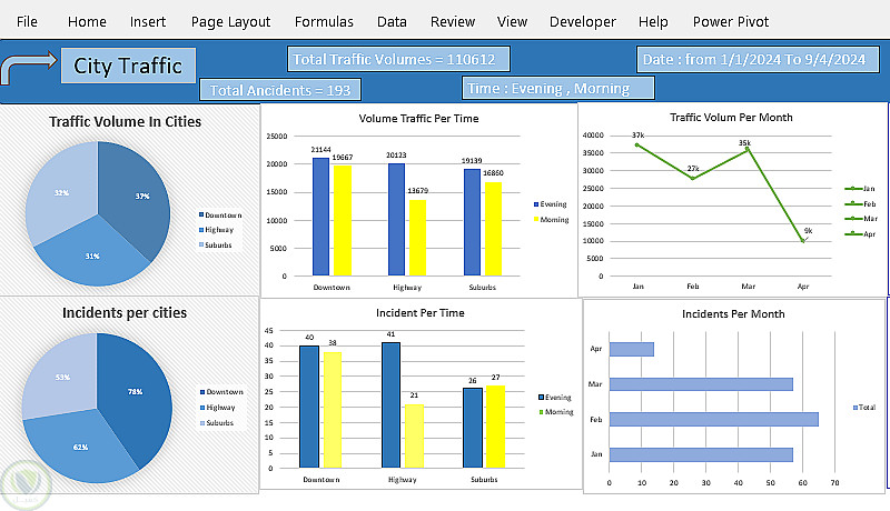 يانات هذا المشروع تحتوي على حركة مرور 3 مدن في كل مساء وصباح خلال الأربع اشهر الاولى من السنة