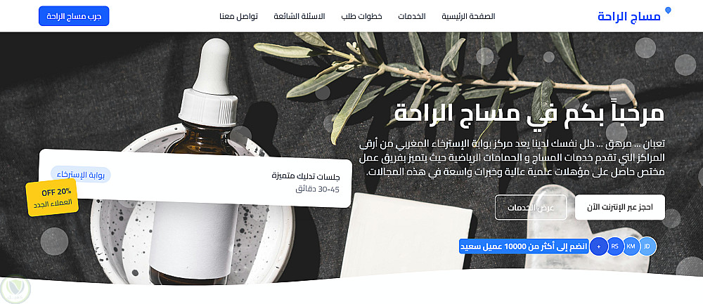 نظام حجز متكامل: يمكن للعملاء حجز خدمة المساج مباشرة عبر الموقع، مع إرسال تأكيد الحجز تلقائيًا إلى تطبيق WhatsApp الخاص بالعميل.