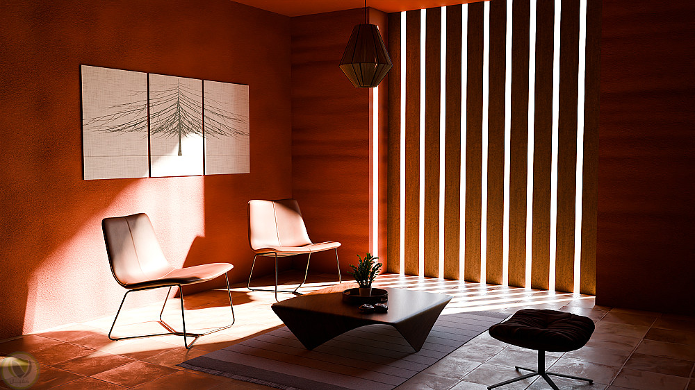باستخدام برنامج Blender، قمت بتصميم وتجسيد مشهد داخلي معاصر يتميز بإضاءة طبيعية ودافئة تخلق جوًا مريحًا وجذابًا. يوضح هذا العمل قدرتي على تصميم العناصر الداخلية المختلفة (الأثاث، الإضاءة، اللوحات) وتوزيعها بشكل متناسق في الفراغ. كما تم التركيز على تفاصيل المواد والإضاءة لخلق واقعية عالية في المشهد."