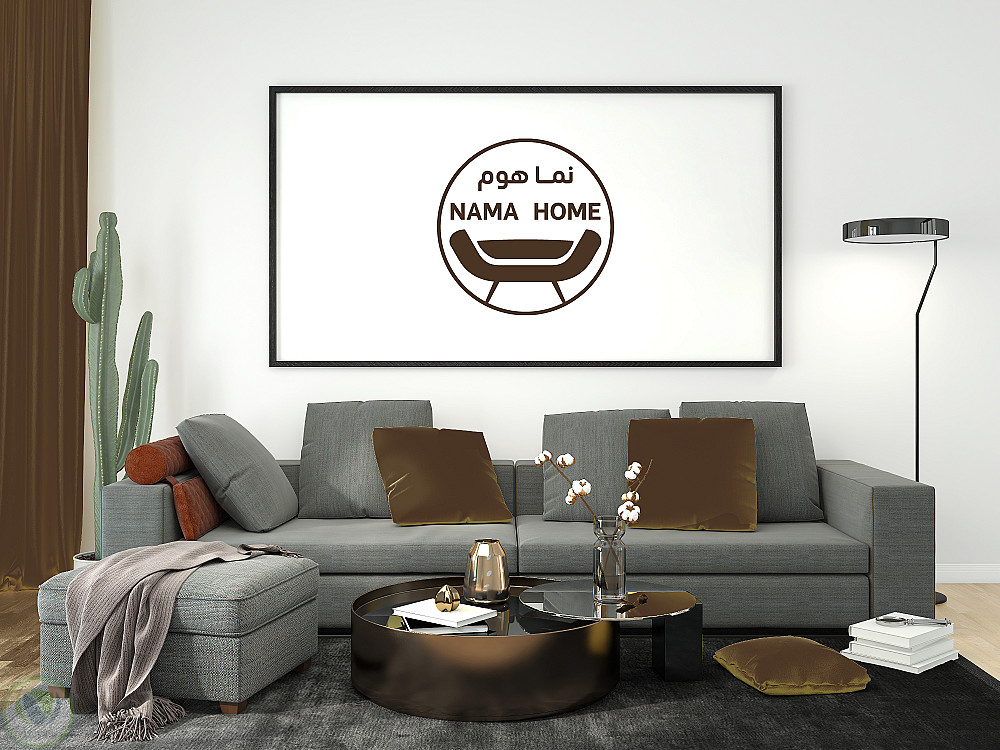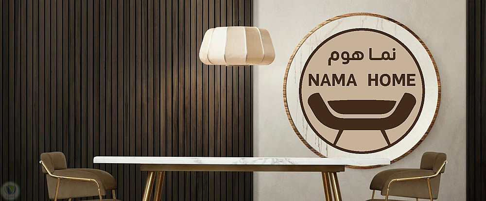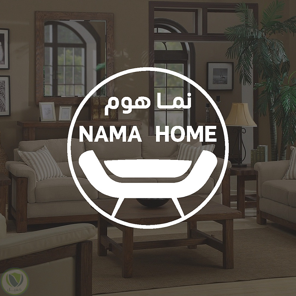 شعارًا لـ "نما هوم" (NAMA HOME). الشعار دائري ولونه بني فاتح، ويحتوي على رسم لأريكة بسيطة في المنتصف. فوق الرسم، توجد عبارة "نما هوم" باللغة العربية، وأسفلها كلمة "NAMA HOME" باللغة الإنجليزية. التصميم يبدو عصريًا وبسيطًا. إذا كنت بحاجة إلى مزيد من التفاصيل أو المعلومات، فلا تتردد في السؤال!