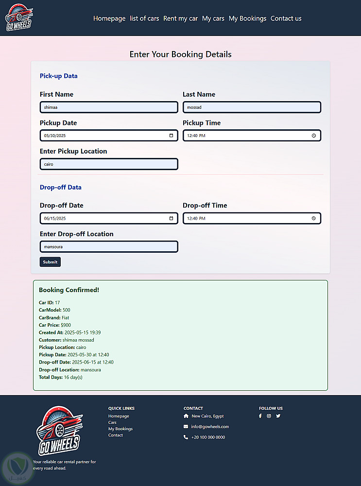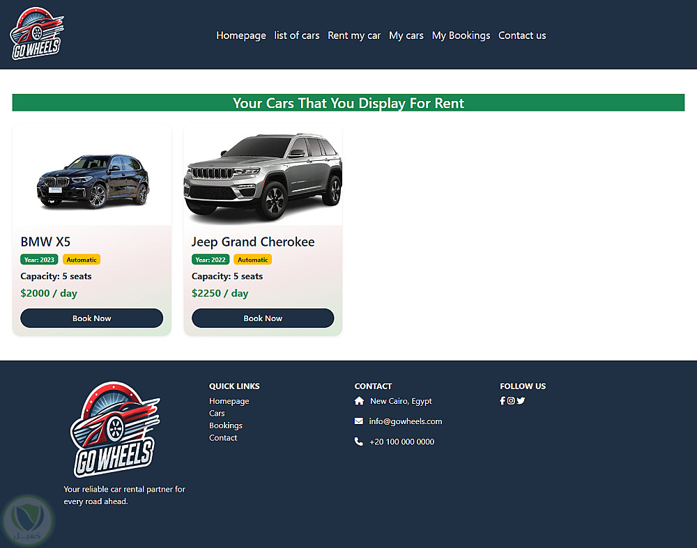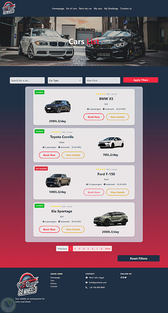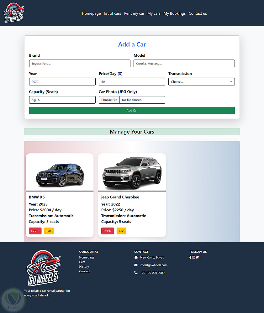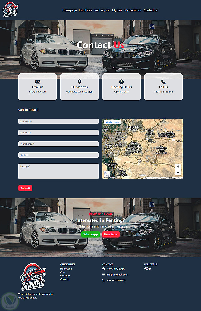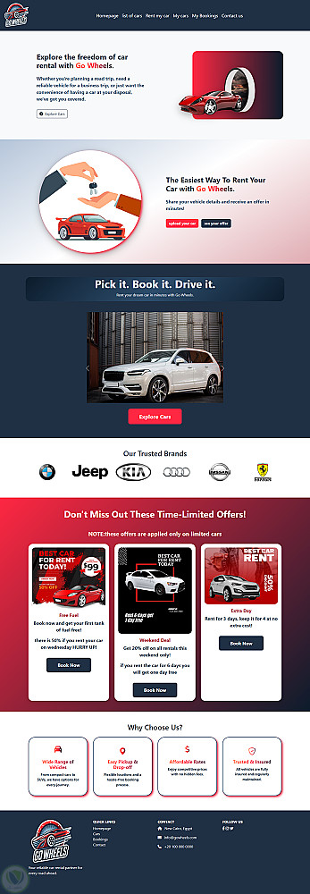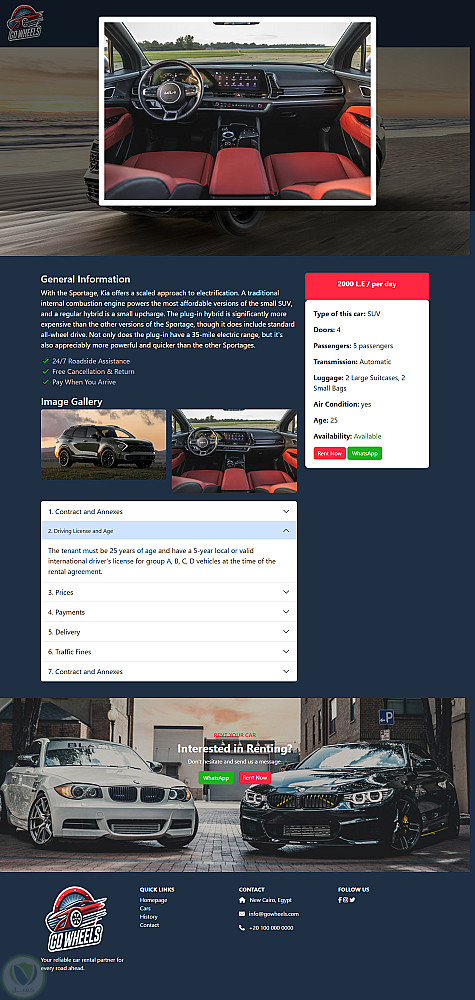 موقع لتأجير السيارات مع عرض لتفاصيل جميع السيارات و صفحه خاصه بالتواصل مع خدمة العملاء مع عروض مميزه على السيارات و كذالك امكانيه رؤيه تفاصيل حجز العميل ورف سيارته على الموقع للايجار