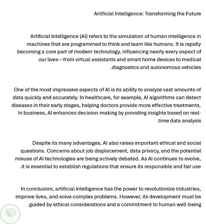 يتناول هذا المقال موضوع الذكاء الاصطناعي (AI) وتأثيره المتزايد في مختلف جوانب الحياة الحديثة. يسلّط الضوء على قدرات الذكاء الاصطناعي في تحليل البيانات واتخاذ القرارات، مع أمثلة من مجالات الطب والأعمال. كما يناقش التحديات الأخلاقية والاجتماعية المرتبطة بهذه التقنية، مثل فقدان الوظائف والخصوصية. يُختتم المقال بدعوة إلى استخدام الذكاء الاصطناعي بشكل مسؤول يخدم مصلحة الإنسان والمجتمع.