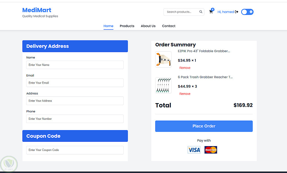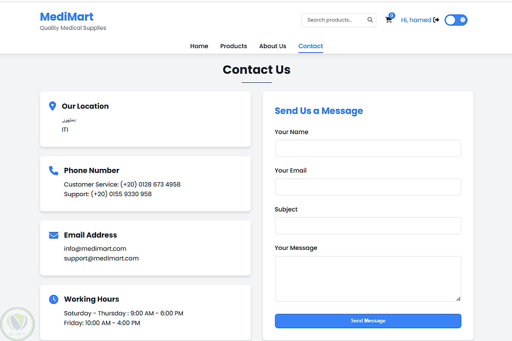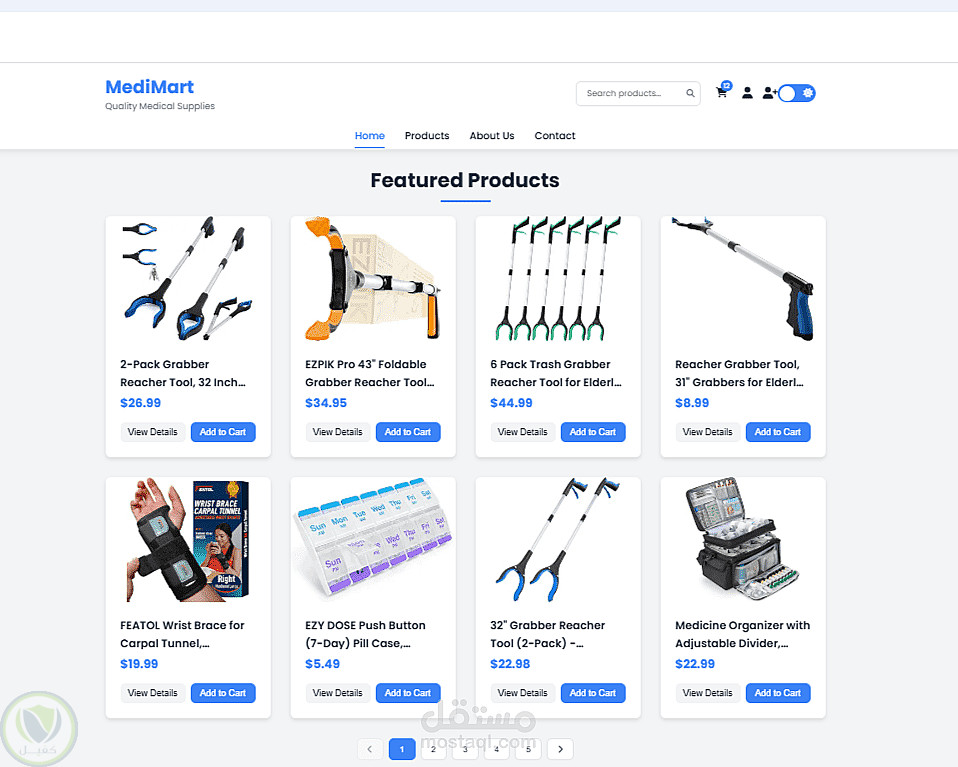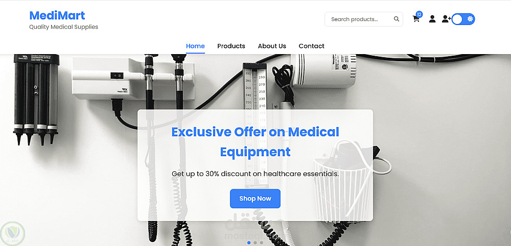 صممت واجهة مستخدم عصرية وسهلة الاستخدام لموقع MediMart، وهو متجر إلكتروني متخصص في بيع المستلزمات الطبية.
