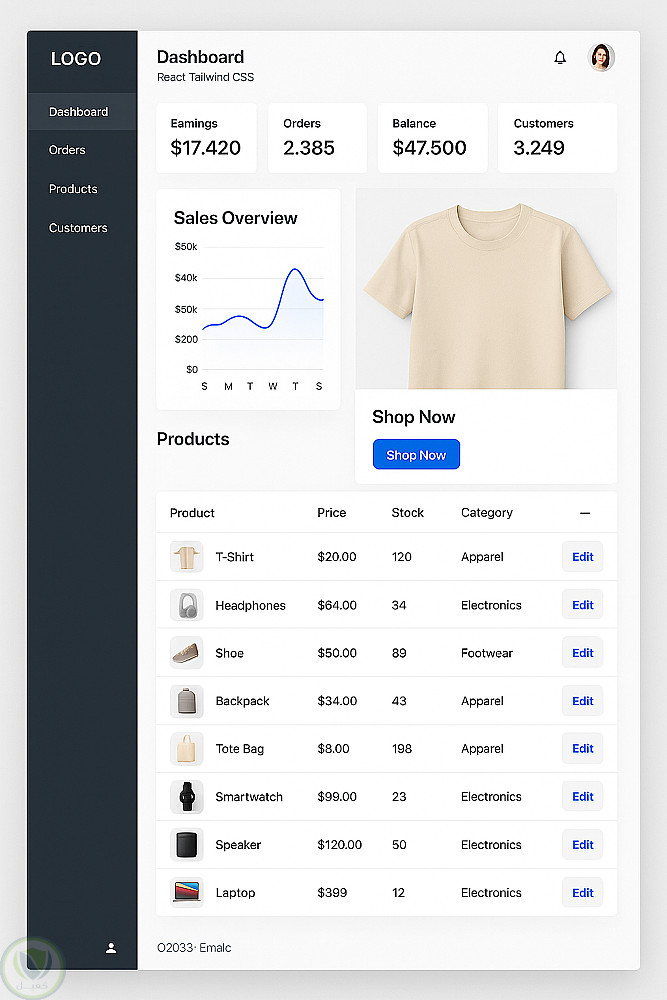 تصميم واجهة لوحة تحكم Dashboard احترافية باستخدام React وTailwind CSS