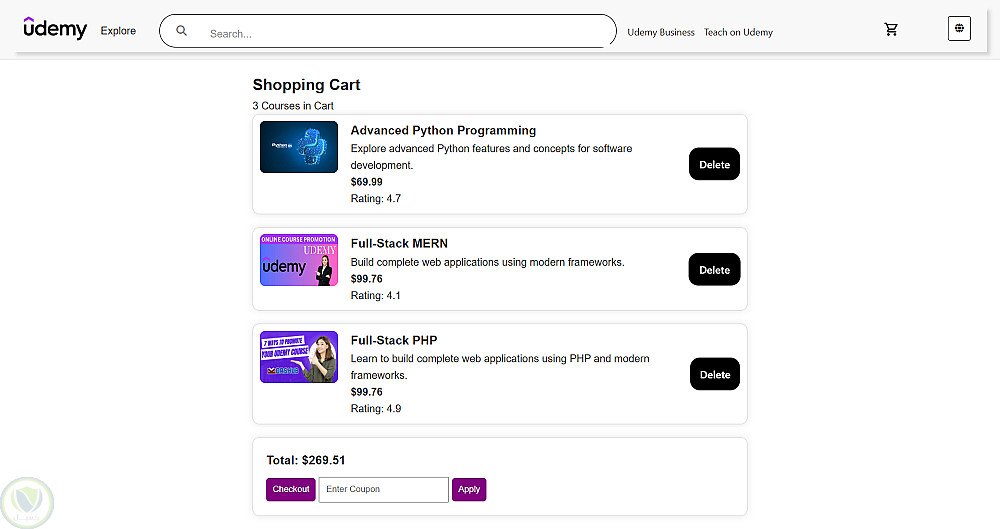 successfully developed a Udemy clone using HTML, CSS, and JavaScript, integrating a JSON file to manage and display course data dynamically. The project includes interactive user interfaces, and smooth navigation, providing a real-world e-learning platform experience.