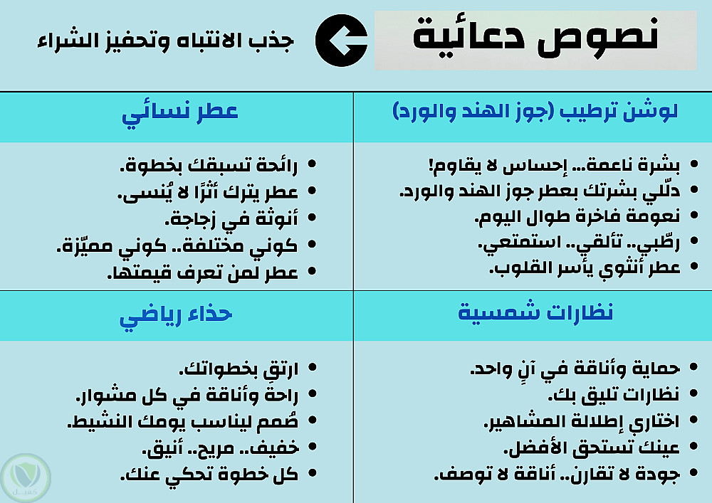 بعض من أعمالي في كتابة النصوص التسويقية و تصميم الصور الإعلانية