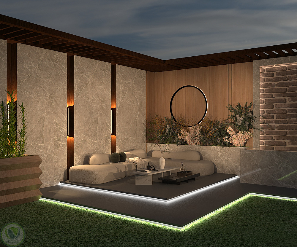 تصميم لاند سكيب لحديقه فيلا بشكل انيق وعصري يحاكي الجمال والابداع مع امكانيه تنفيذه