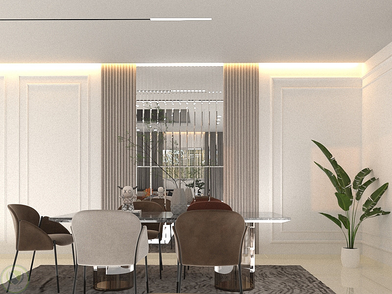 تصميم لمجلس مضافا اليه طاولة طعام بشكل عصري وانيق وبسيط غير فوضوي ومدروس