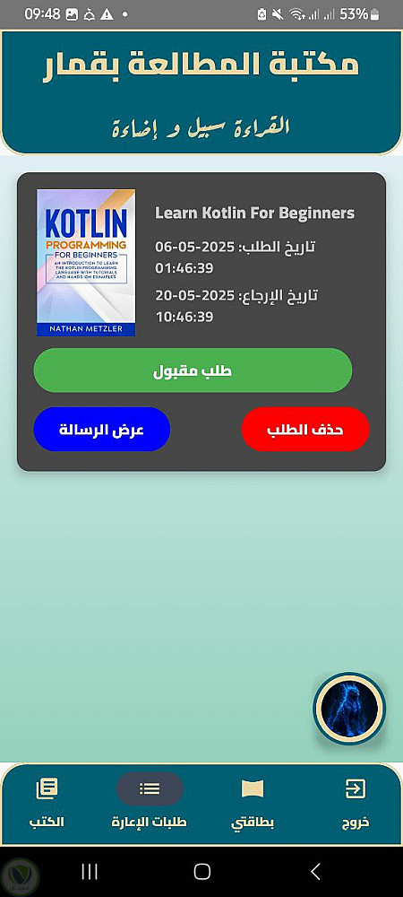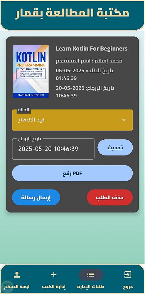 تطبيق موبايل لتسيير مكتبة المطالعة وإدارة إعارة الكتب