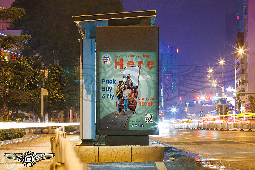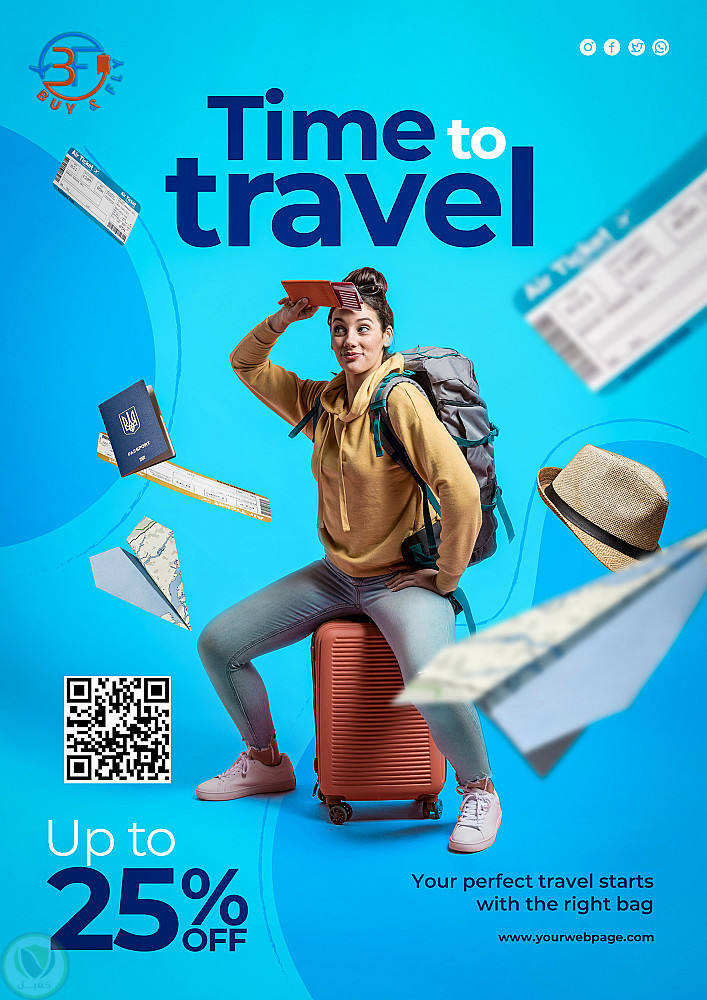 تم تصميم الشعار بما يتماشى مع فكرة المشروع، وهو متجر متخصص في بيع شنط السفر. استُلهم التصميم من روح السفر والانطلاق، وتم تنفيذ الهوية البصرية الكاملة — بما في ذلك الشعار، الإعلانات، والبوسترات — باستخدام برامج التصميم الاحترافية مثل Adobe Photoshop وAdobe Illustrator.
