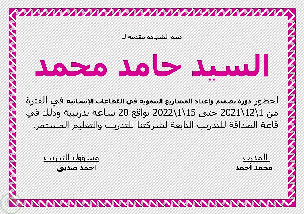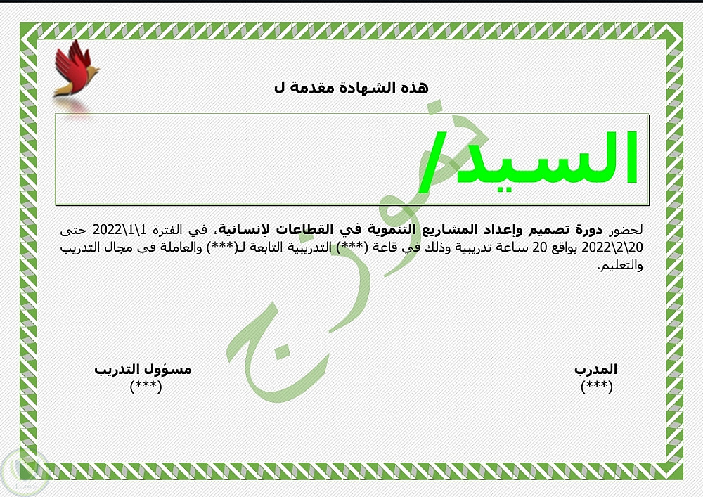 تصاميم شهادات ببرنامج الورد وبعض الجهد الشخصي