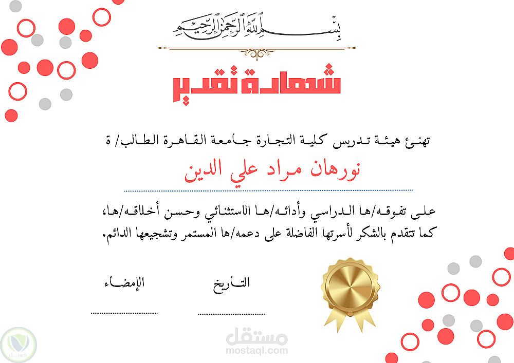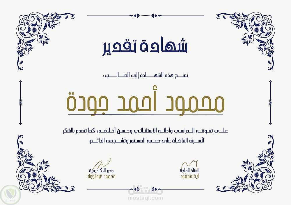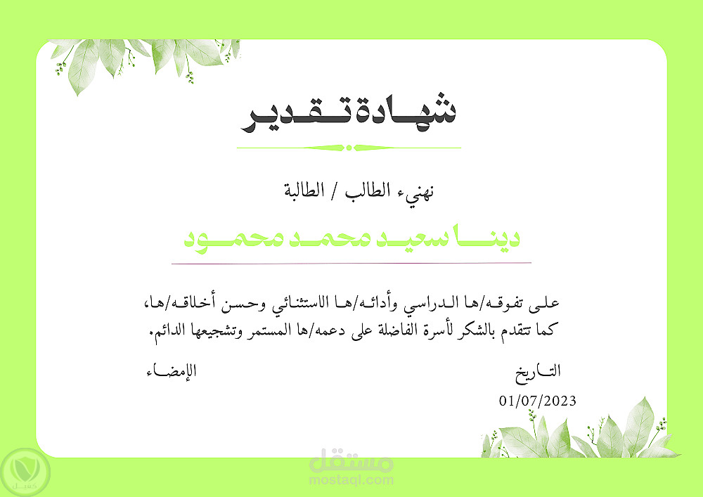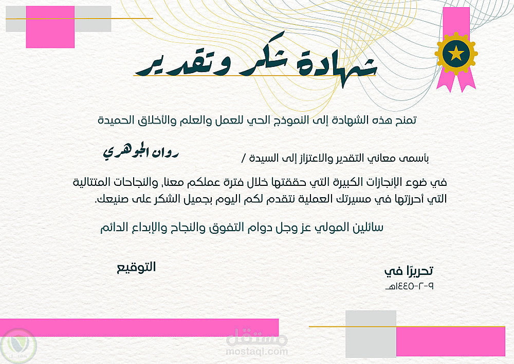 تصميم شهادات شكر وتقدير