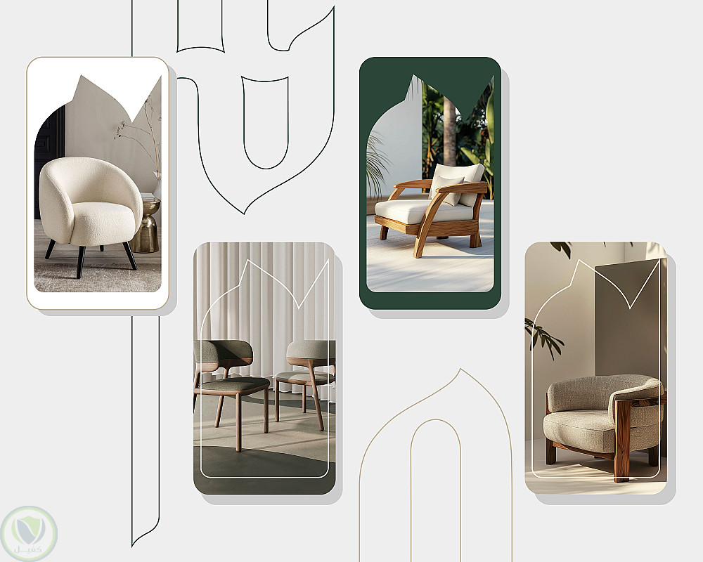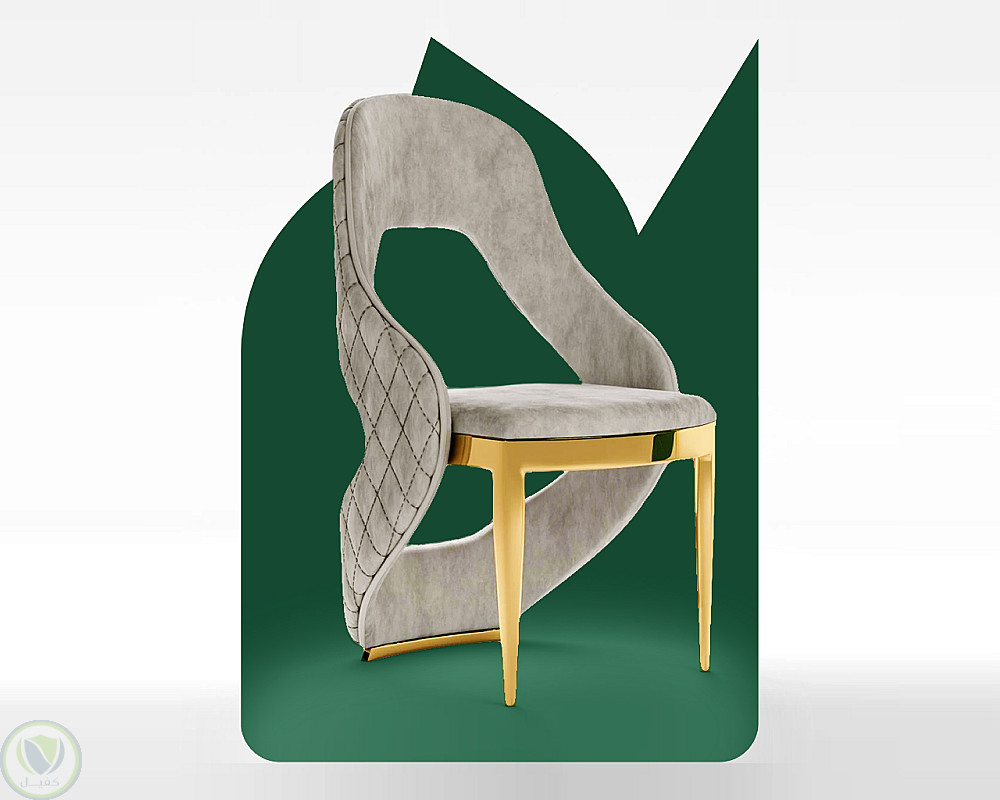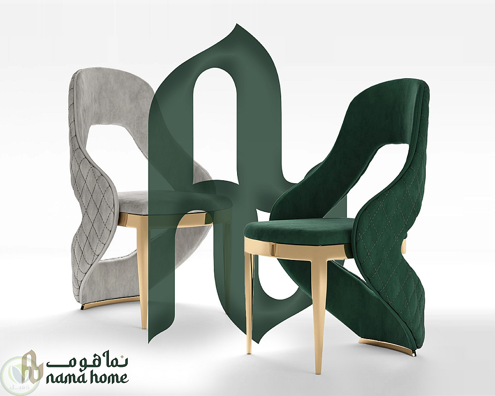 الأيقونة: تم تصميم شكل أيقوني مستوحى من تصميم كرسي عصري (كما هو موضح بالصورة الثانية) ، يرمز بشكل مباشر إلى نشاط المؤسسة في مجال الأثاث المنزلي. الشكل يحتوي على منحنيات ناعمة تعكس طابع التصميم الداخلي الراقي.