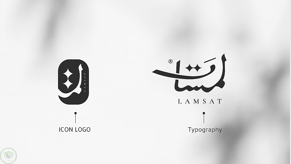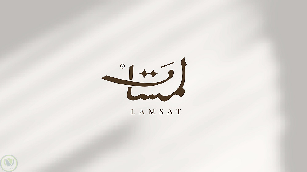 الكلمة الإنجليزية "Lamsat" تم تنسيقها بخط بسيط وحديث لتتماشى مع التصميم العام.