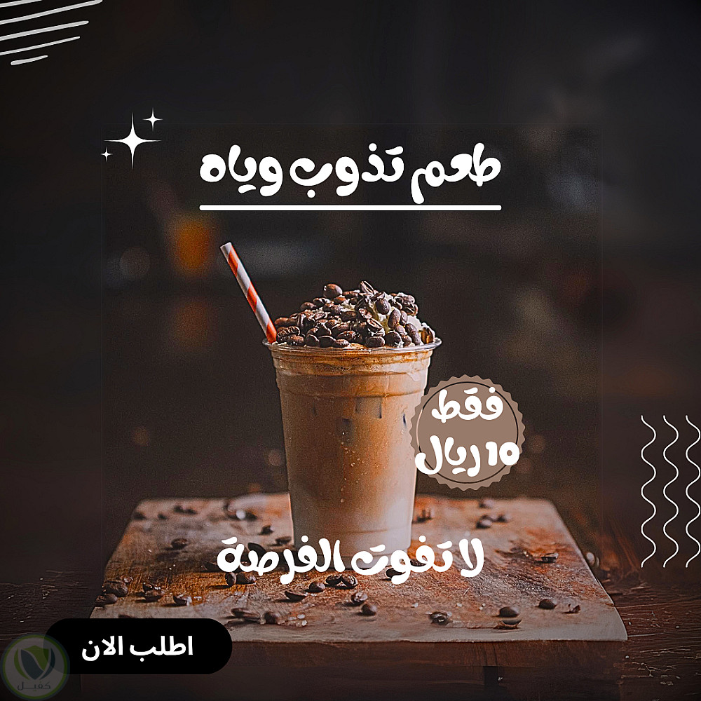 تصميم اعلاني عن عرض علي القهوة مع اضافة الوان داكنة تتماشي مع القهوة