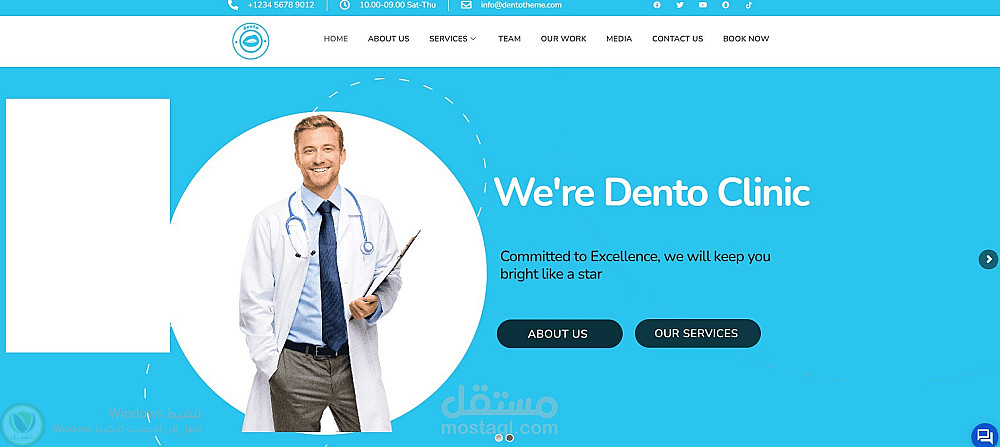الموقع: Dento Theme وصف الموقع: Dento Theme هو قالب موقع متخصص في تقديم حلول تصميم مواقع للعيادات والمراكز الطبية