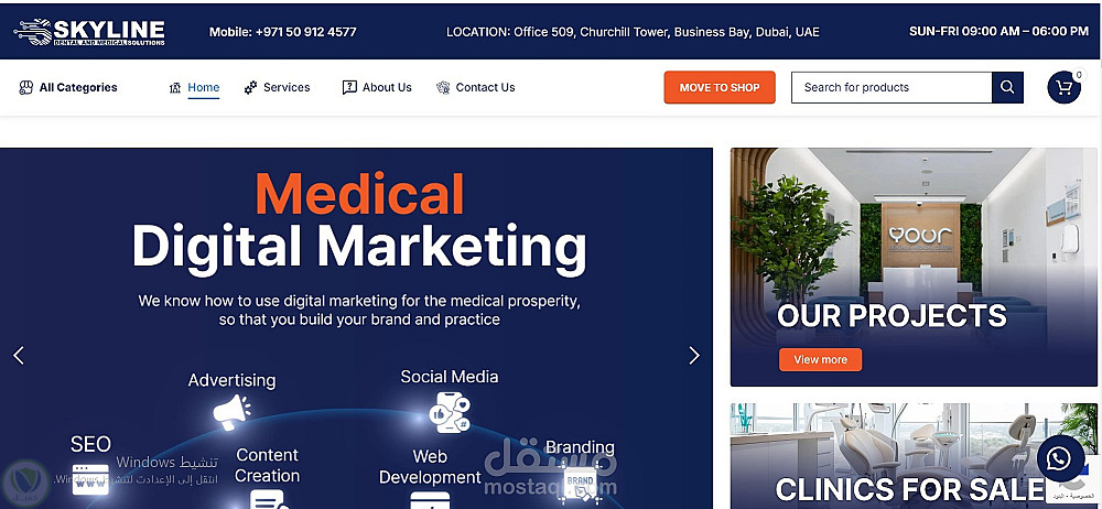 Skyline Medical هو موقع إلكتروني متخصص في تقديم خدمات طبية شاملة. يُظهر الموقع تصميمًا احترافيًا يعكس جودة الخدمات التي تقدمها المؤسسة، ويستهدف المرضى الذين يبحثون عن رعاية طبية متميزة.