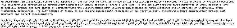 ترجمة قطعة بحثية أدبية تتحدث عن ما بعد الحداثة وعلاقتها بمسرحية Krapp's Last Tape للكاتب صموئيل بيكيت من اللغة العربية إلي اللغة الإنجليزية