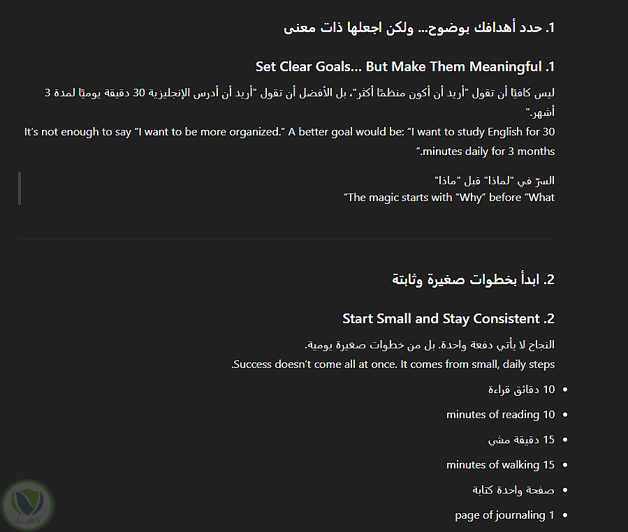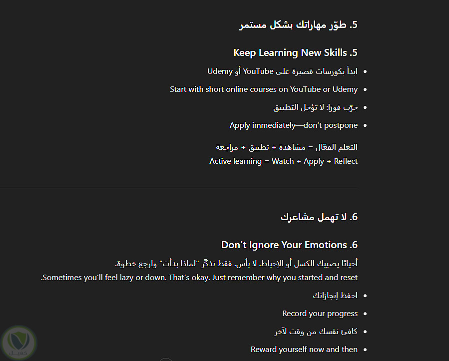 مقال عن تنميه الذات وكيف تطورها لكي تحقق اهدافك بشكل سليم وايضا العمل علي تنفيذ المهام من العربيه الي الانجلزيه والعكس