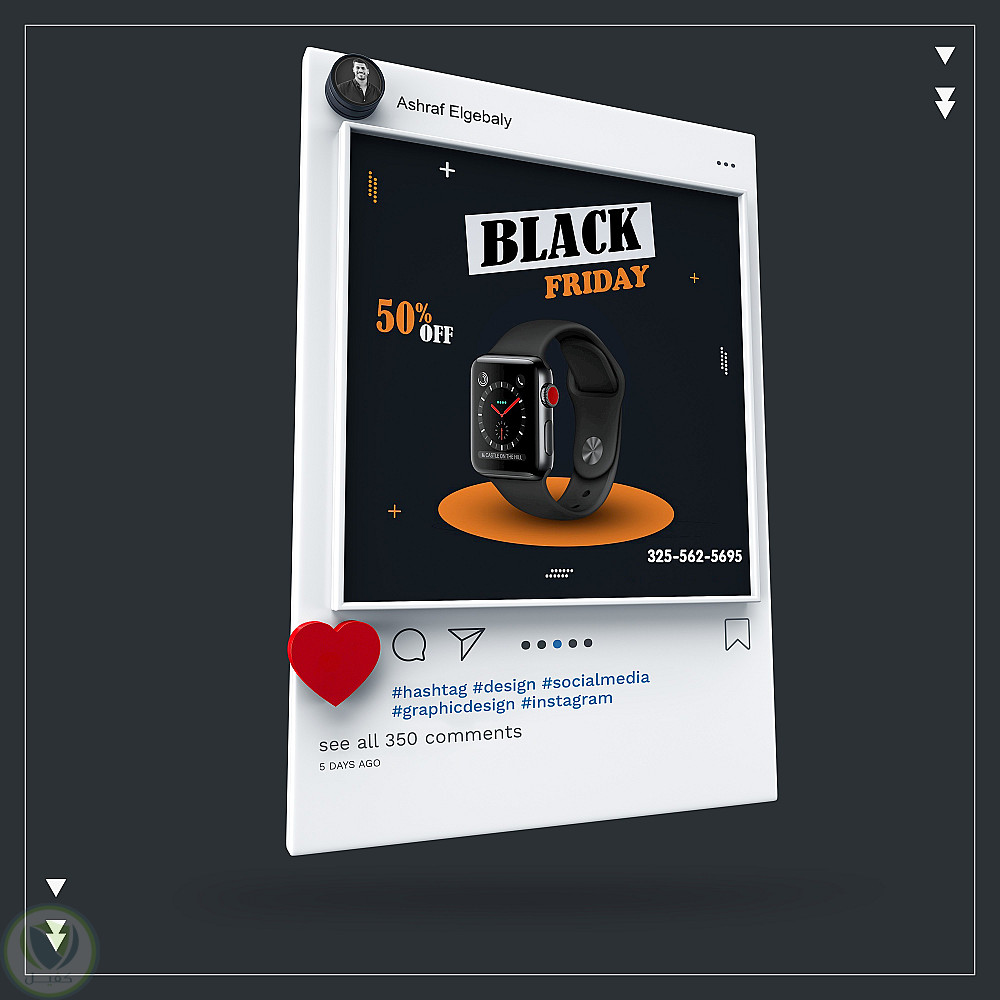 في هذا التصميم، قمت بإعداد منشور إعلاني مخصص لمنتج ساعة ذكية بطريقة عصرية وجذابة تناسب جمهور مواقع التواصل الاجتماعي.