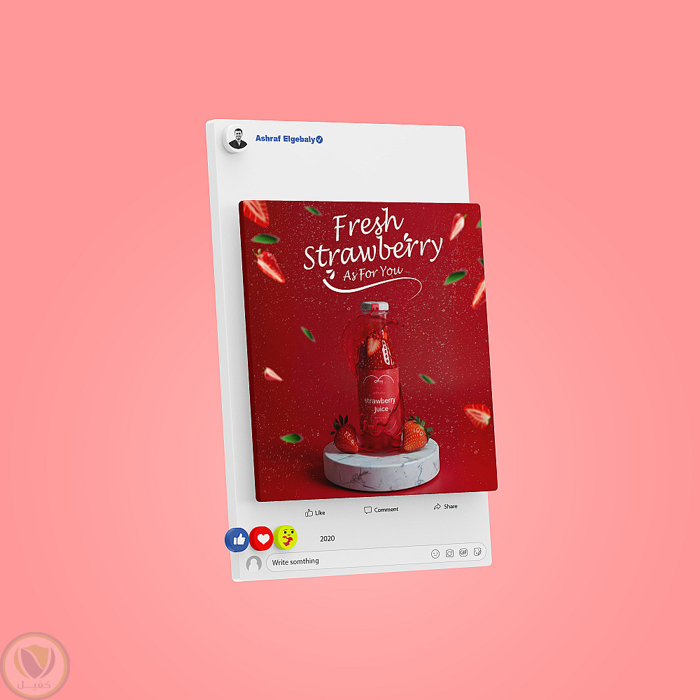 تصميم منشور سوشيال ميديا لعصير فراولة طبيعي