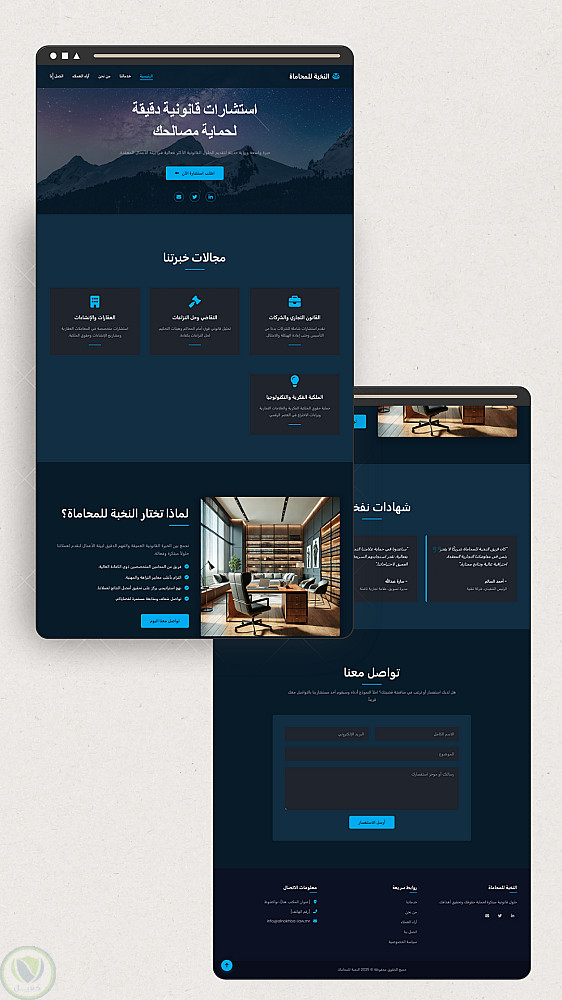 تم التركيز في التصميم على المظهر العصري والأنيق، مع ضمان تجربة مستخدم سلسة وتجاوب كامل (Responsive Design) مع جميع الأجهزة، ليقدم الموقع صورة احترافية وجديرة بالثقة لعملاء المكتب