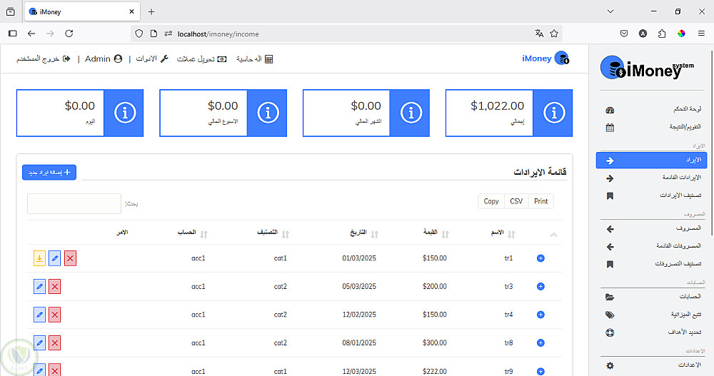 iMoney هو نظام احترافي لإدارة وتتبع الإيرادات والمصروفات، يجمع بين سهولة الاستخدام وعمق التحليل، ومناسب للأفراد والمشاريع والفرق.