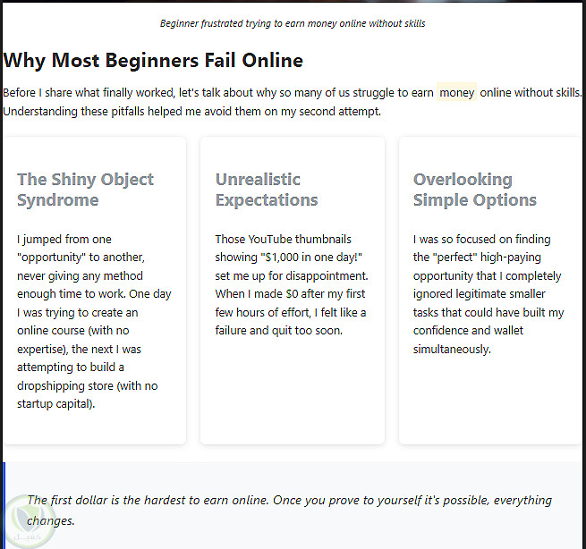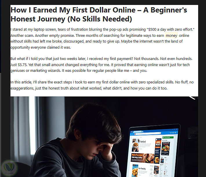مقال تحفيزي يروي قصة واقعية حول أول تجربة ربح من الإنترنت، ويعرض أهم التحديات التي واجهها الكاتب والطريقة التي تخطى بها العقبات لتحقيق أول دخل.