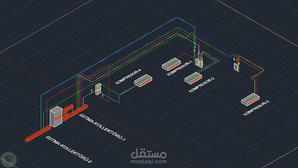 في هذا المشروع، قمتُ بتصميم نظام التدفئة والتبريد (Isıtma Soğutma) باستخدام AutoCAD، مع التركيز على تطوير نموذج ثلاثي الأبعاد يضمن الكفاءة التشغيلية والامتثال للمعايير الهندسية الحديثة.