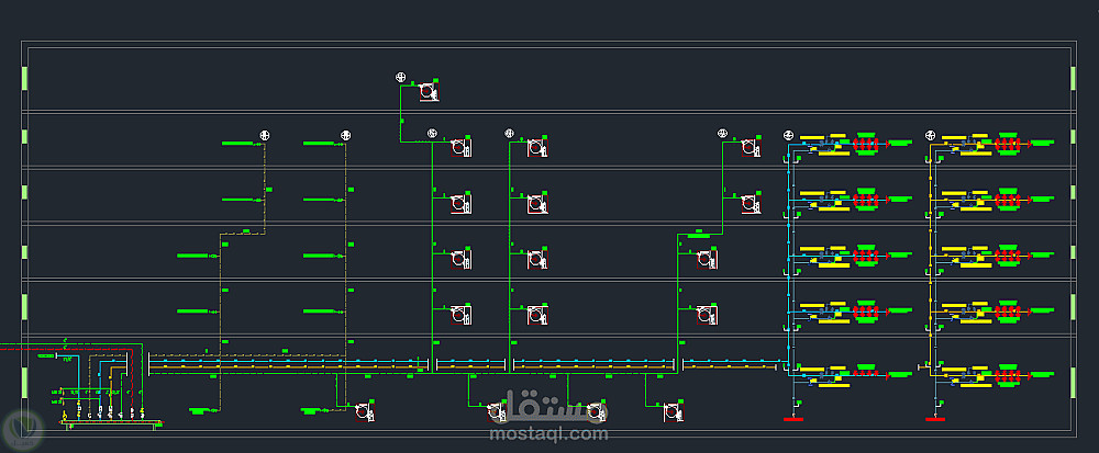 تم تنفيذ الحسابات بدقة عالية باستخدام برامج التصميم الهندسي مثل AutoCAD وExcel، مع مراعاة المواصفات الفنية لكل نظام. قمتُ بتحليل الرسومات التنفيذية لاستخراج كميات الأنابيب والوصلات والصمامات وجميع التجهيزات الميكانيكية بدقة، مما يضمن دقة التكاليف وسهولة التخطيط والتنفيذ في الموقع.