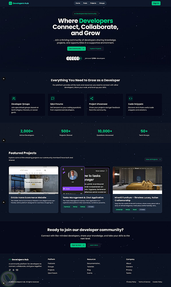 🧑💻 Developers Hub هي منصة تواصل اجتماعي للمطورين، بيقدروا من خلالها يتواصلوا، يشاركوا مشاريعهم ويتفاعلوا مع بعض.