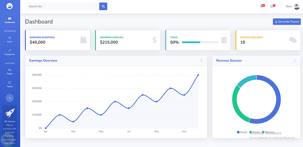 لوحة تحكم إدارية للتجارة الإلكترونية