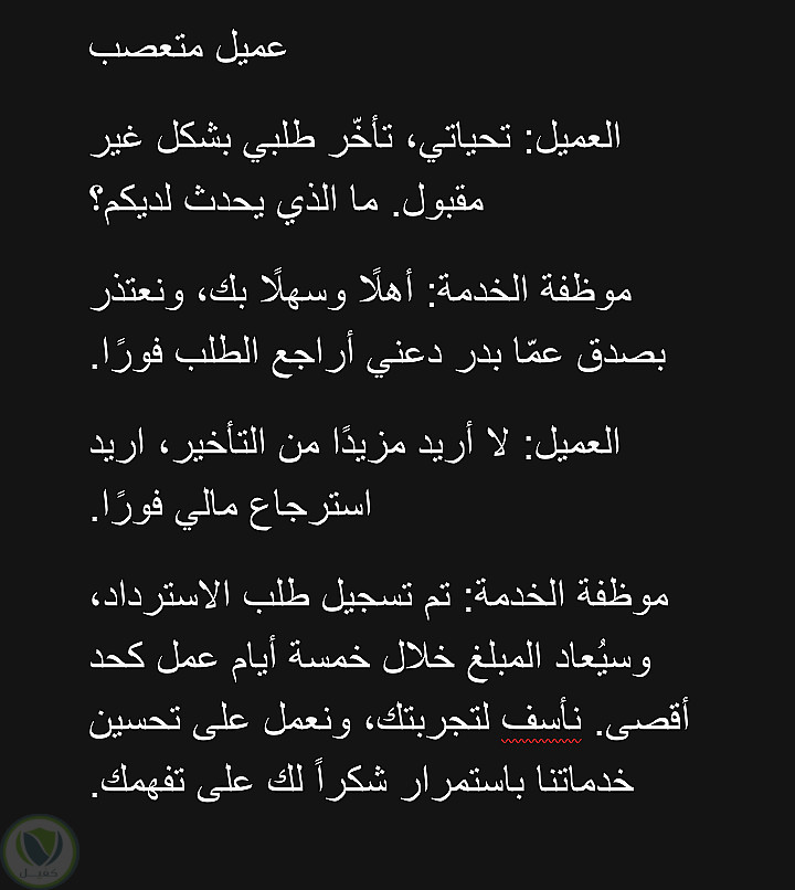 هذا النموذج تمت كتابته كمثال، بين عميل والموظف.