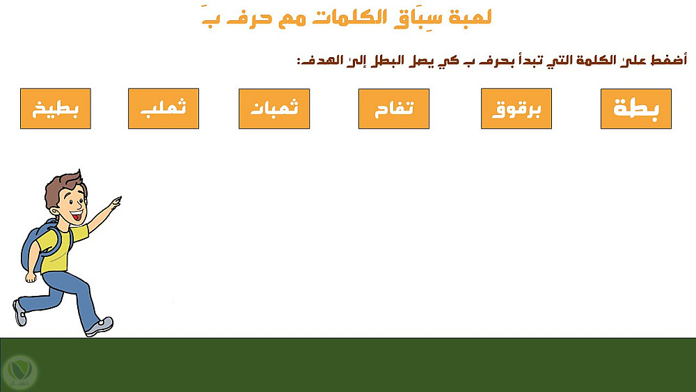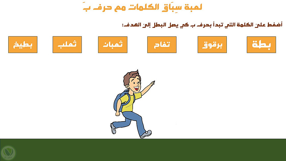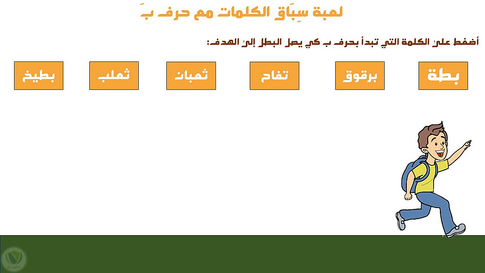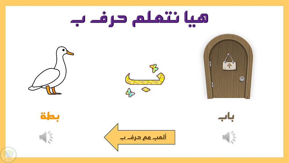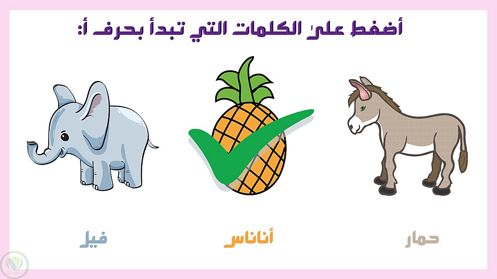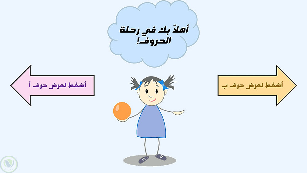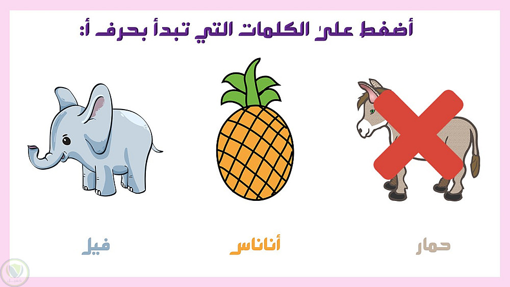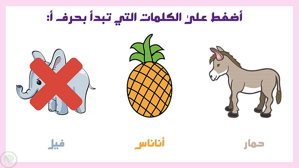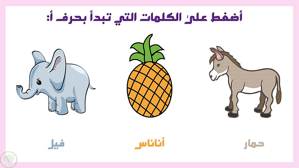 شرائح تفاعلية حيث يتفاعل الطفل مع الحرف ويستكشف أمثلة وصور شيقة.