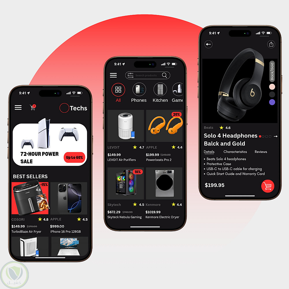 تصميم UI متجر بيع اجهزة الكترونية وأدوات كهربائية