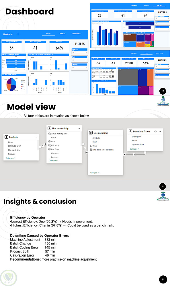 نفذت مشروع تحليل كفاءة خط إنتاج مشروبات باستخدام Power BI.