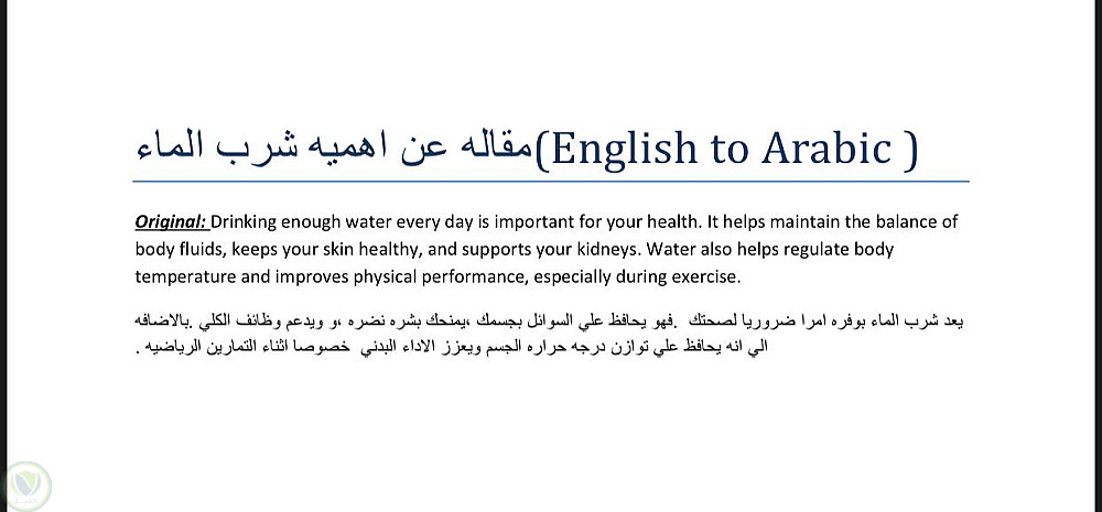 مقال عن اهميه شرب الماء من الانجليزيه للعربيه