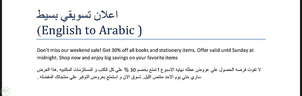 اعلان بسيط مترجم من اللغه الانجليزيه للعربيه